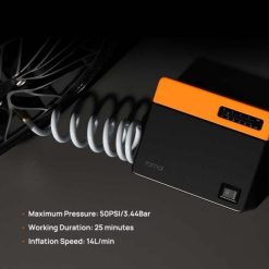 Ống dây bơm đặt ngầm bên trong: Ống PU cuộn được đặt ngay bên trong máy bơm hơi, vừa tiện lợi vừa không gây cản trở vẻ ngoài bóng bẩy của máy. Chỉ cần kéo nó ra và bắt đầu bơm, bất cứ khi nào và bất cứ nơi nào bạn cần.
